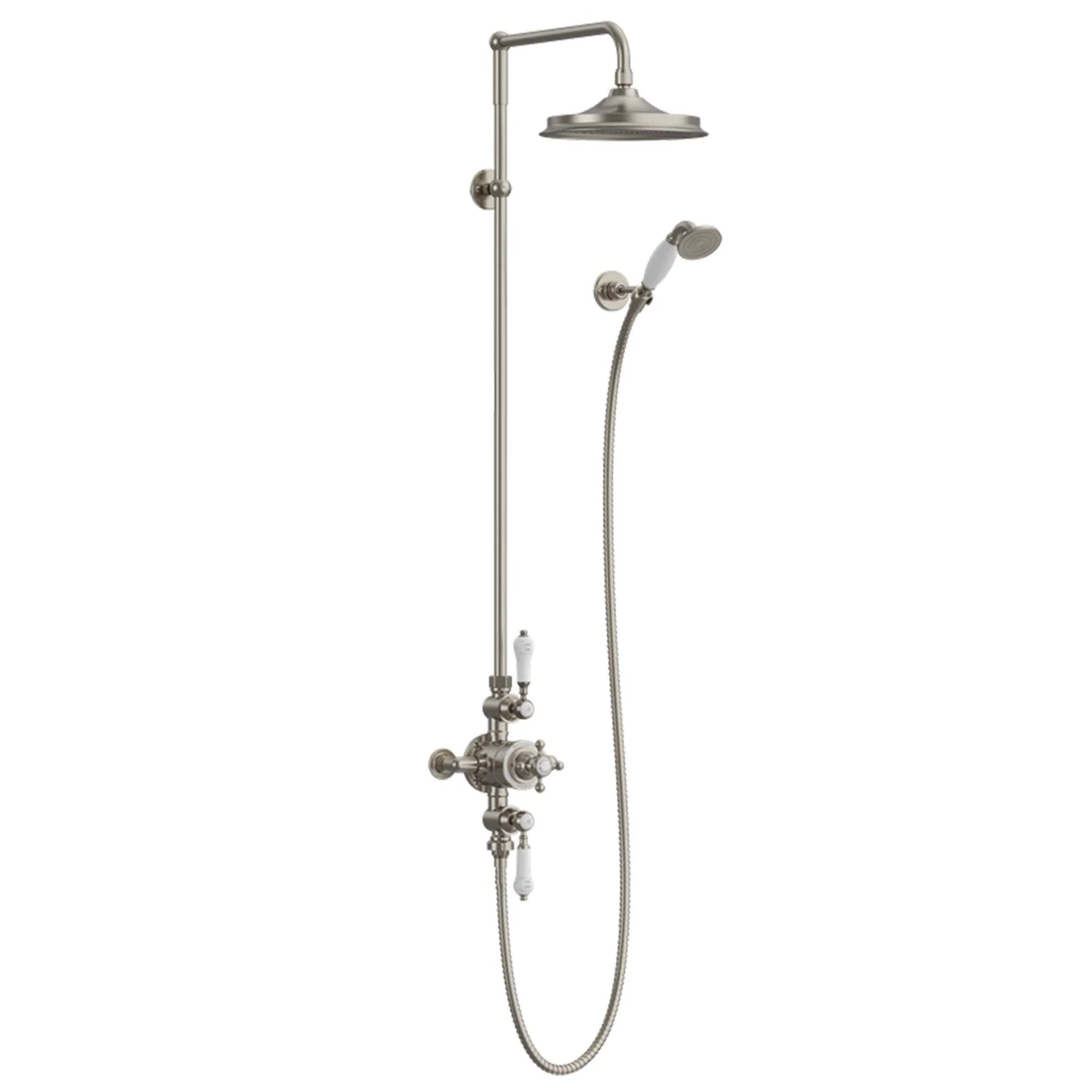 Burlington Avon Exposed Thermostatic Rigid Riser Shower with 2 Outlet Valve, Shower Head and Handset – Brushed Nickel