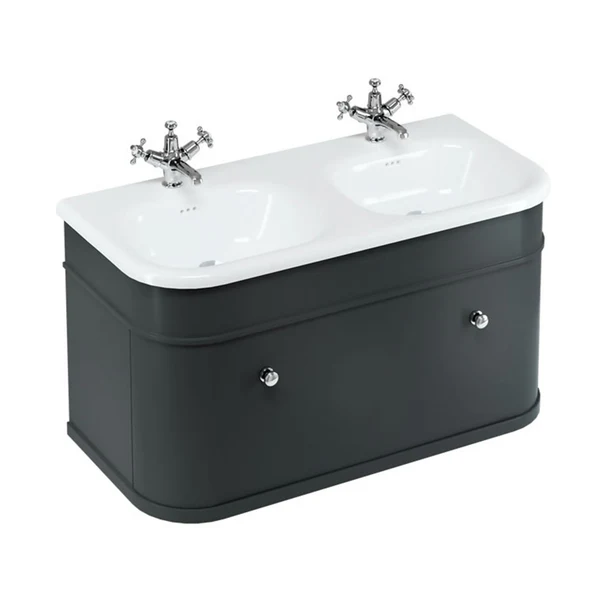 Burlington Chalfont 1000 Wall Mounted Vanity Unit With Double Roll Top Basin – Matt Black