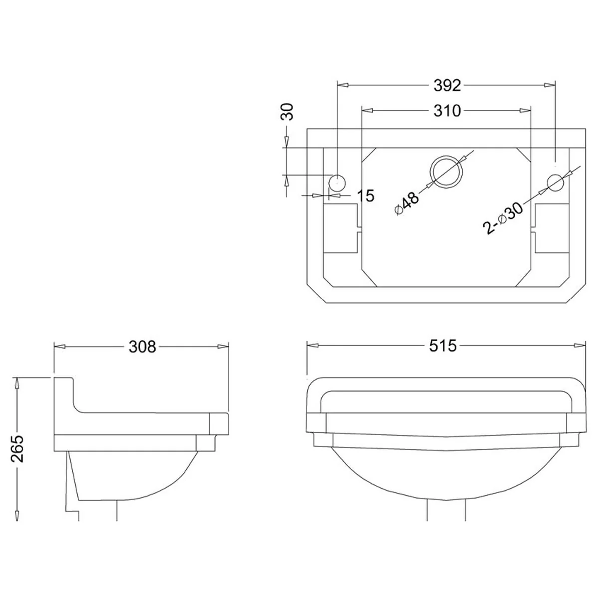 Burlington Edwardian 510 Rectangular Washbasin - Image 2