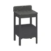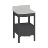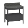 This floorstanding vanity unit includes a single soft close drawer with pull handles, as well as an open central storage area that is perfect for storing towels. The solid surface marble effect worktop offers both extra storage and a suitable surface for a countertop basin and tap, adding a touch of elegance to the unit’s overall design.