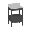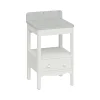 This floorstanding vanity unit includes a single soft close drawer with pull handles, as well as an open central storage area that is perfect for storing towels. The solid surface carrara marble effect worktop offers both extra storage and a suitable surface for a countertop basin and tap, adding a touch of elegance to the unit’s overall design.