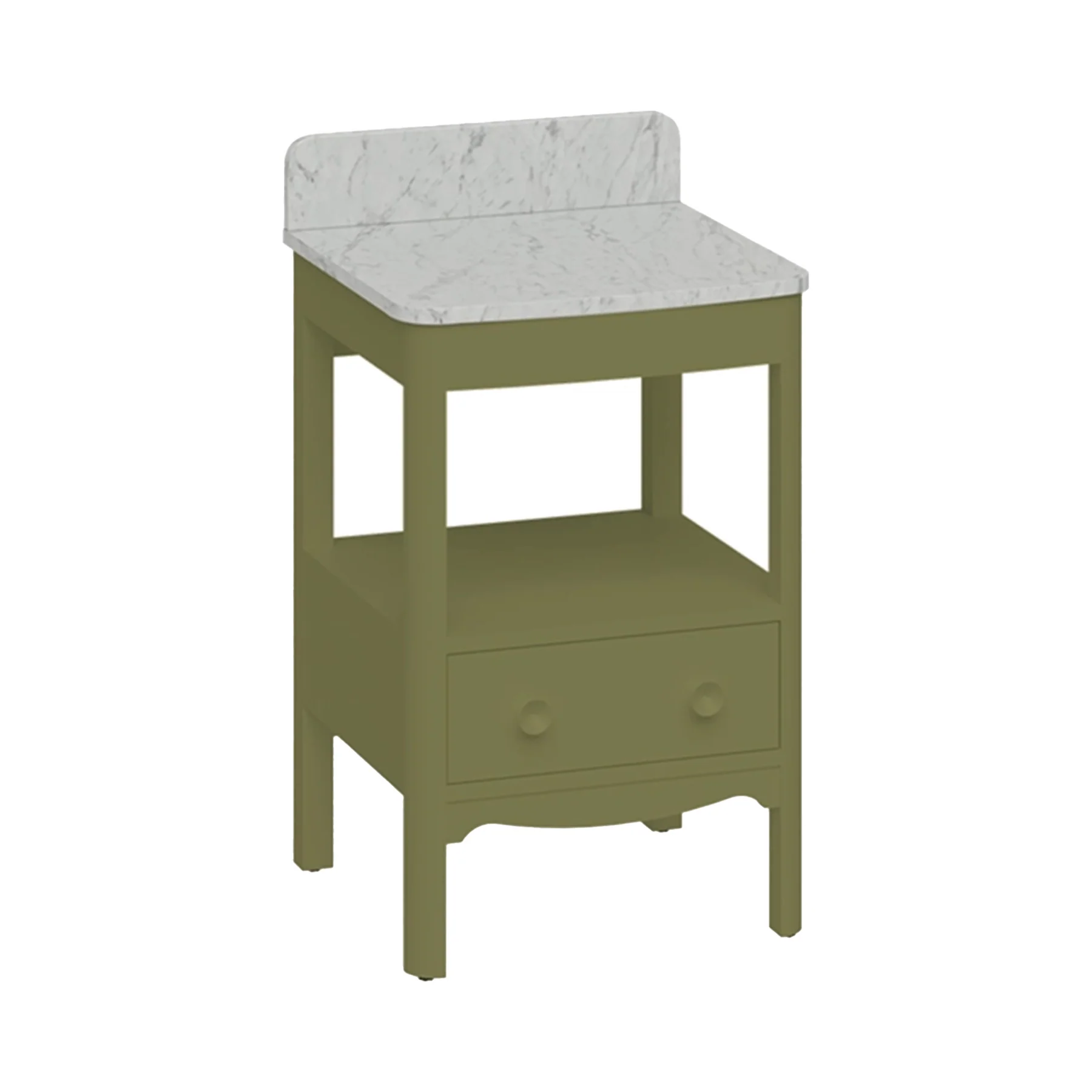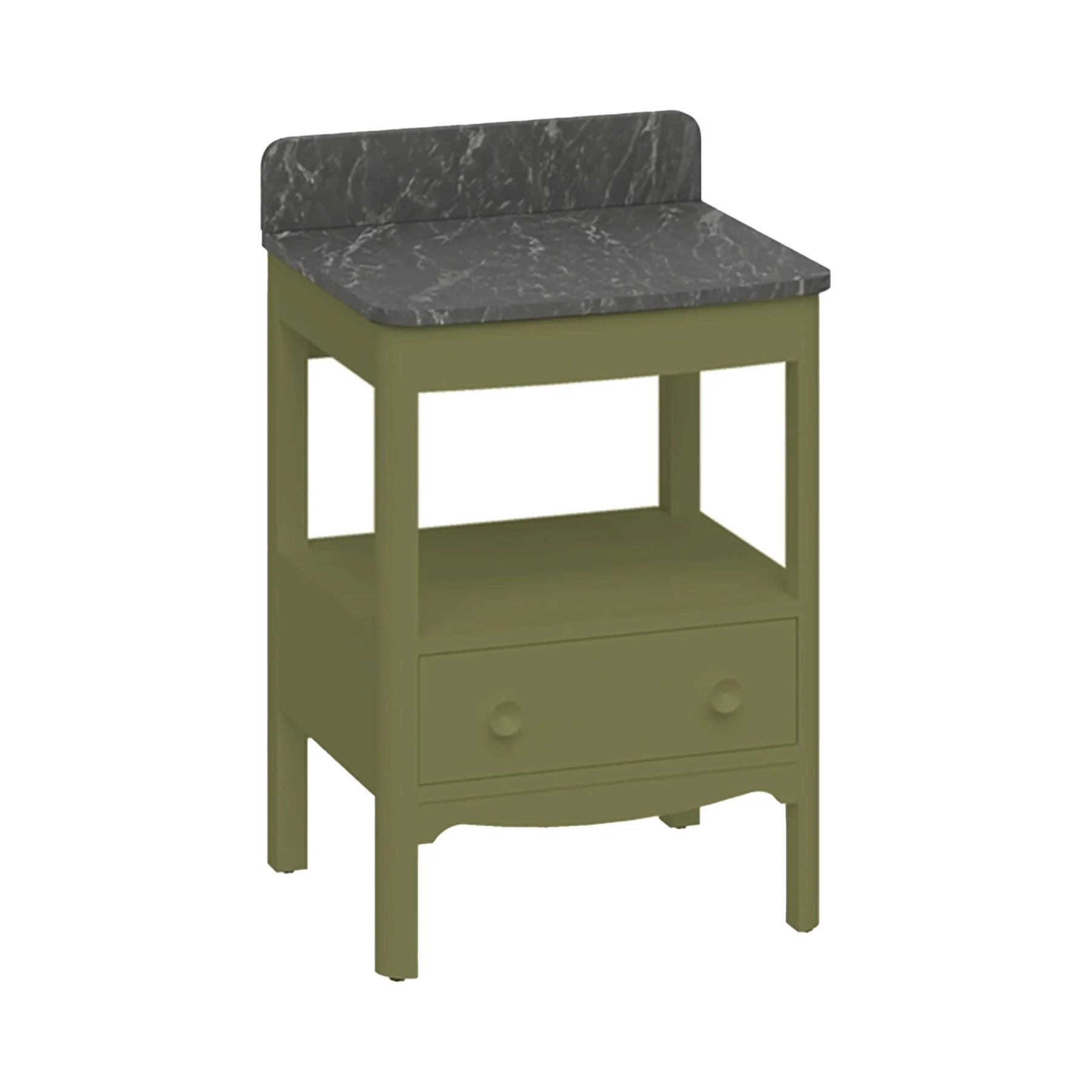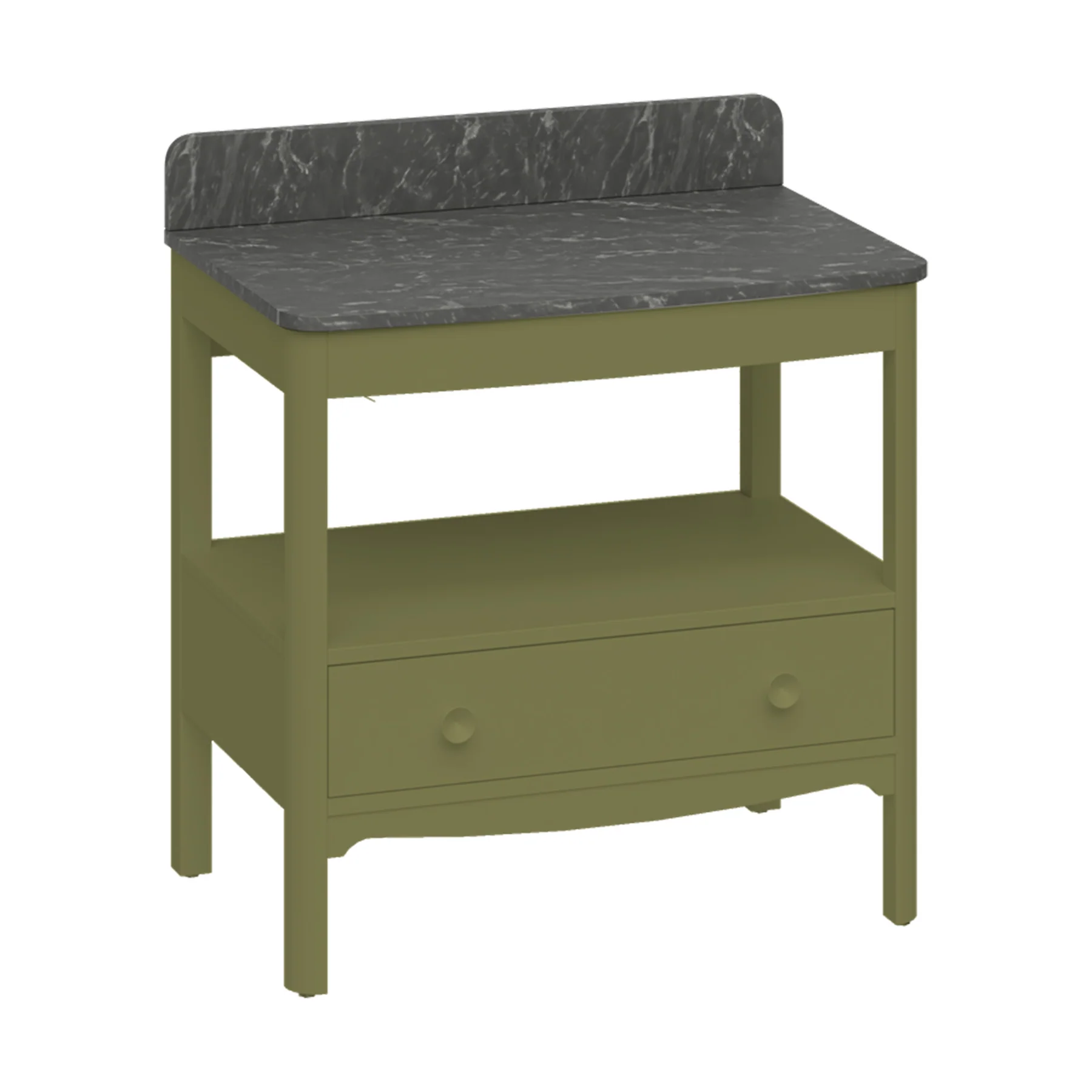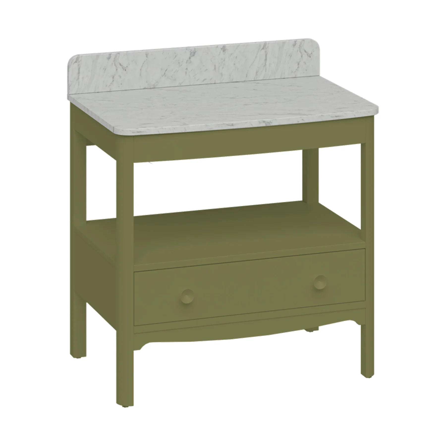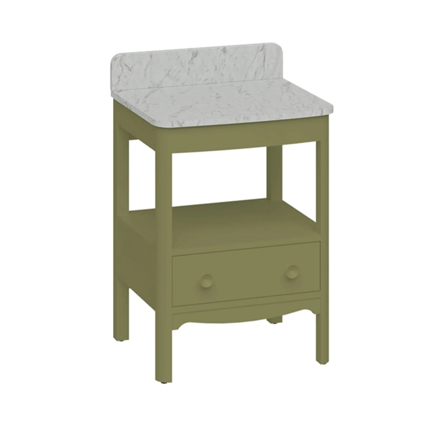 Burlington Guild Floorstanding Single Drawer Vanity Unit With Solid Surface Carrara/ Marquina Worktop and Upstand – Carlyle Green