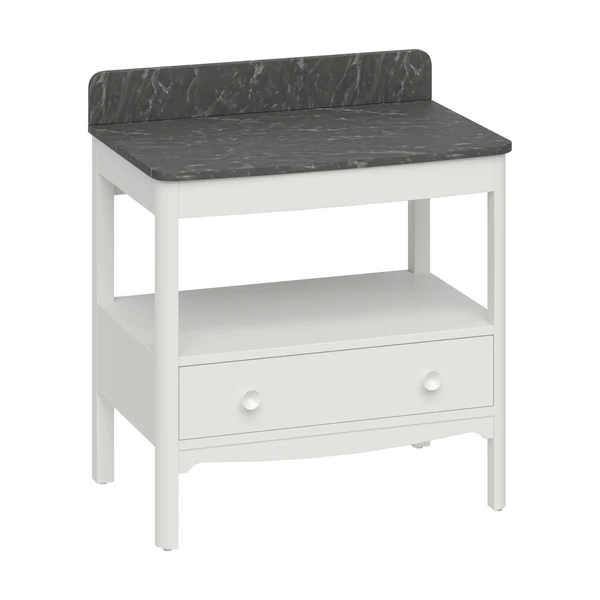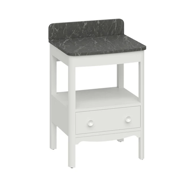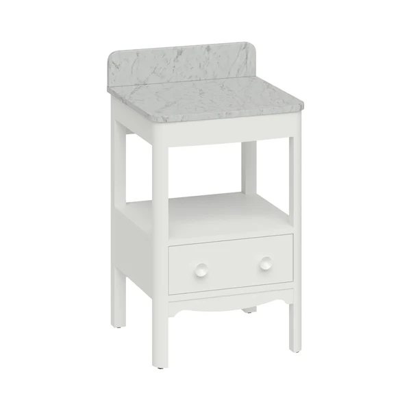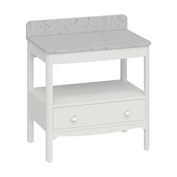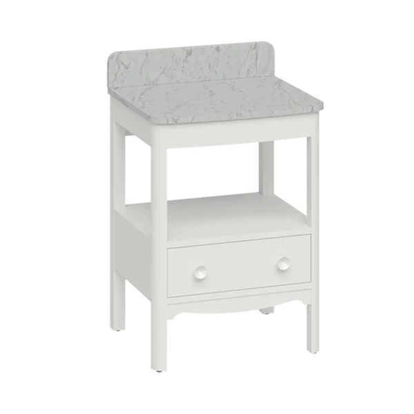 Burlington Guild Floorstanding Single Drawer Vanity Unit With Solid Surface Carrara/ Marquina Worktop and Upstand – Varley White