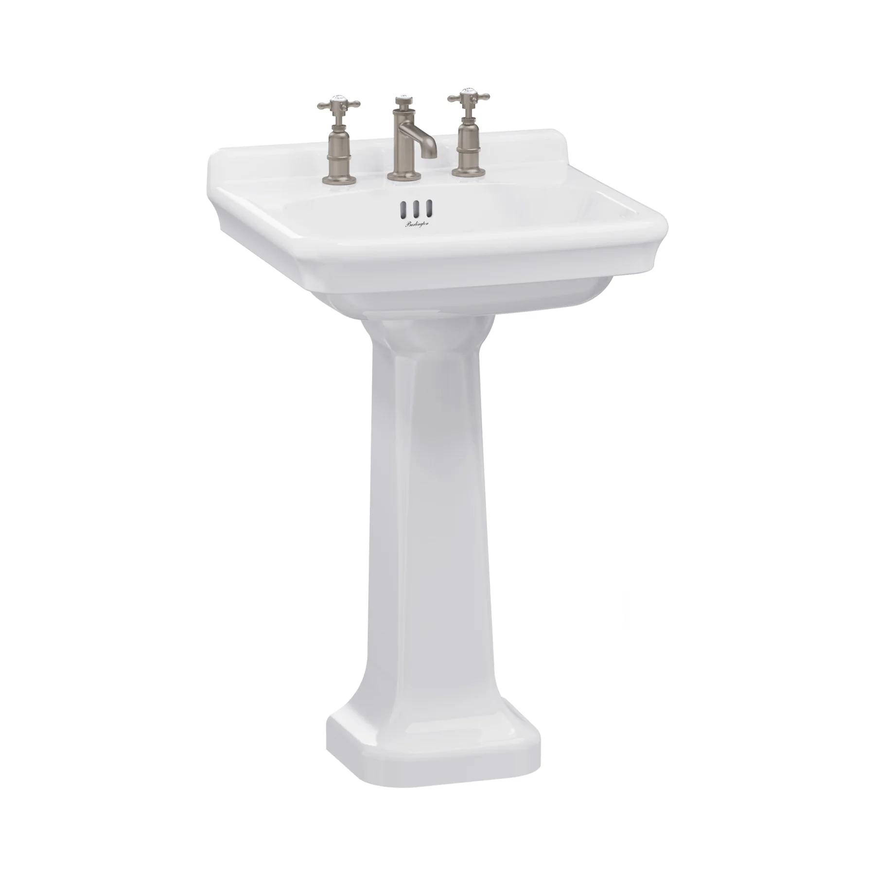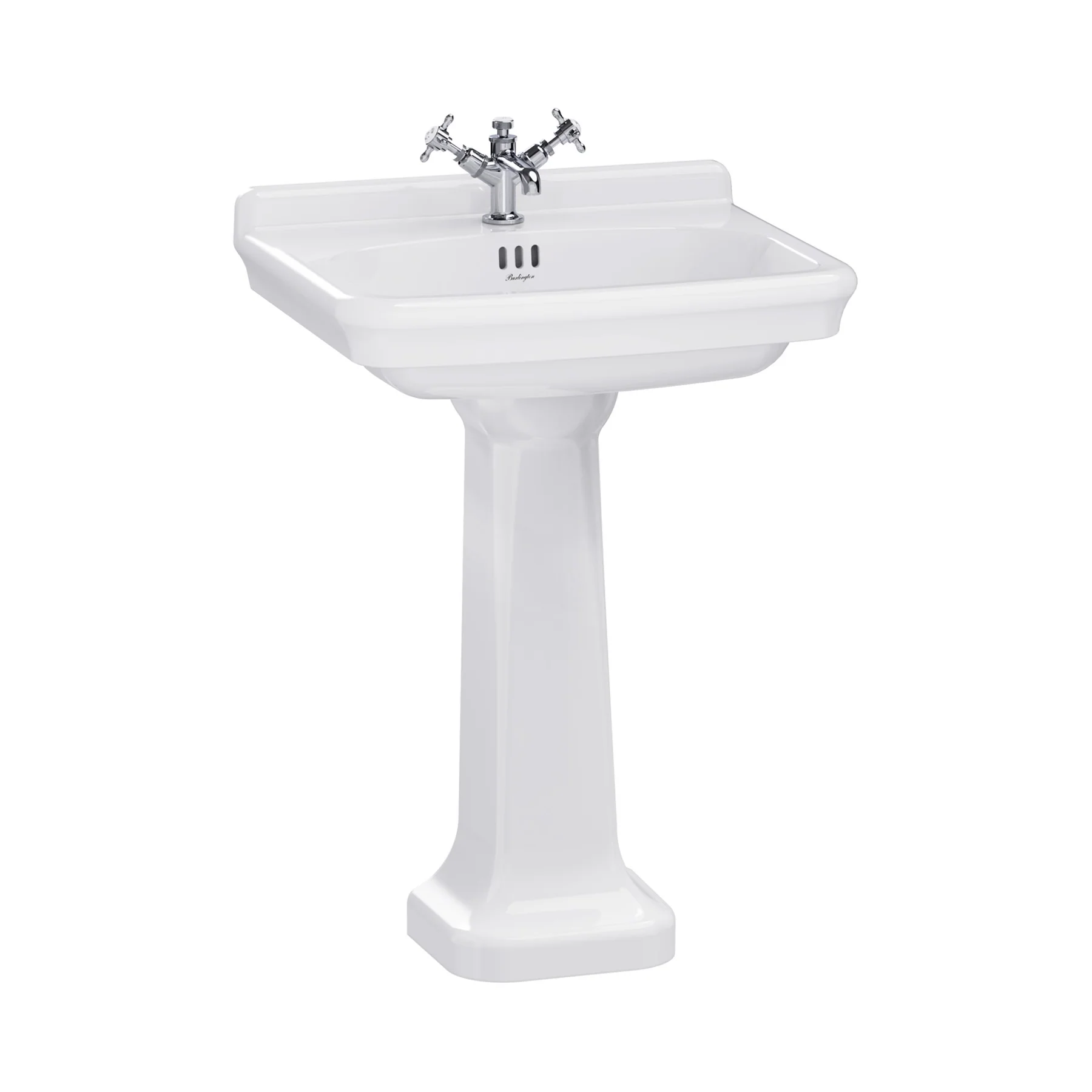 This elegant traditional style Guild basin with standard pedestal is available in 3 sizes with the choice of 1, 2 or 3 tap holes*. Having a wide array of options makes it perfect for use with one of the Burlington range of traditional style taps.