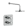 The shower valve has a minimalist square design, with two traditional crosshead handles which are easy to use for controlling the water temperature and output.