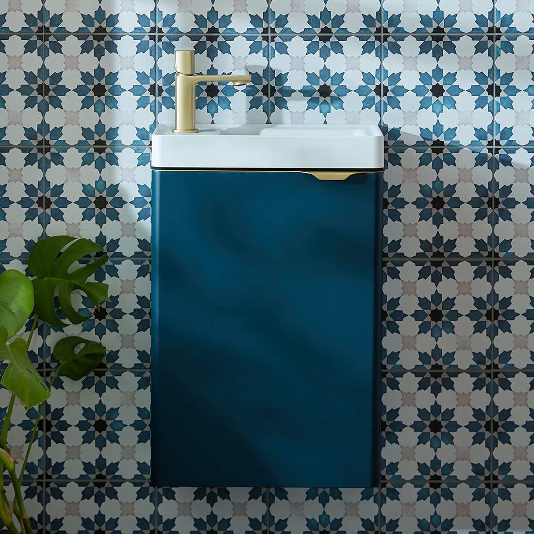400mm wall hung cloakroom unit, with reversible door in a cove blue finish