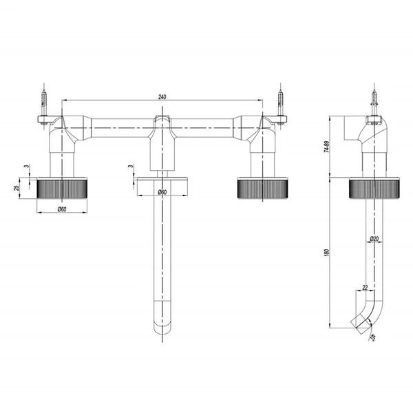Improve the practicality in your bathroom with this excellent 3 hole wall mounted basin mixer tap from the 3ONE6 range of bathroom products, designed to withstand the test of time and provide years of dependable usage.