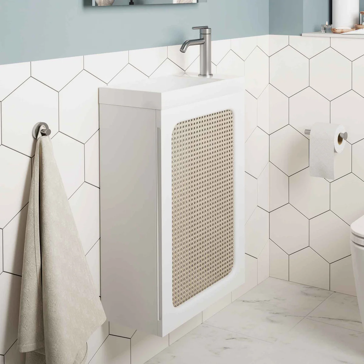 Crosswater Alo Rattan Wall Mounted Cloakroom Vanity Unit With Basin