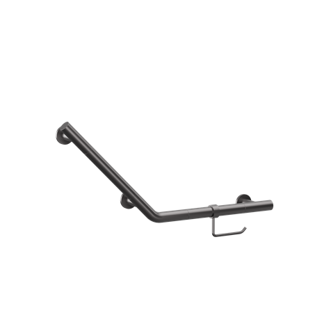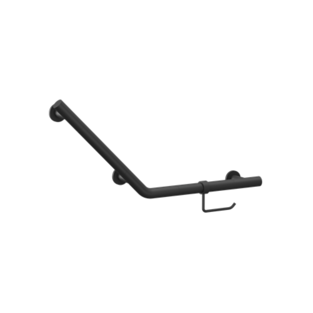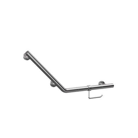 This Angled Grab Bar and WC Roll Holder presents a wonderful modern alternative for providing support around the toilet area. Combining the bathroom rail with an integrated toilet roll holder utilised the space in a highly efficient way. Having both components situated in this way takes up less space on the way, reduces the number of wall fixtures and allows for both elements to be at the right height. The Angled Grab Bar can also be used as a regular rail by removing the WC Roll Holder accessory.