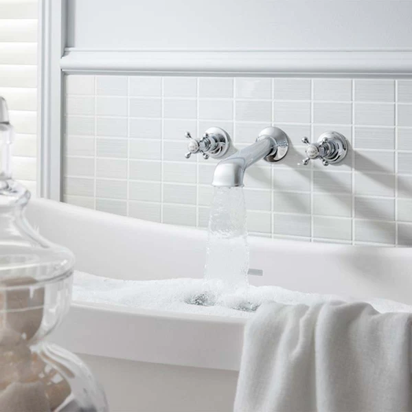 Crosswater Belgravia Crosshead 3 Hole Wall Mounted Bath Spout with Hot and Cold Taps