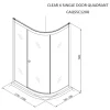 Contemporary and practical, the Clear 6 Offset Quadrant Shower Door features gently curving top and bottom profiles with toughened 6mm glass panels and door which opens with a refined movement thanks to the overhead, double roller fixings.