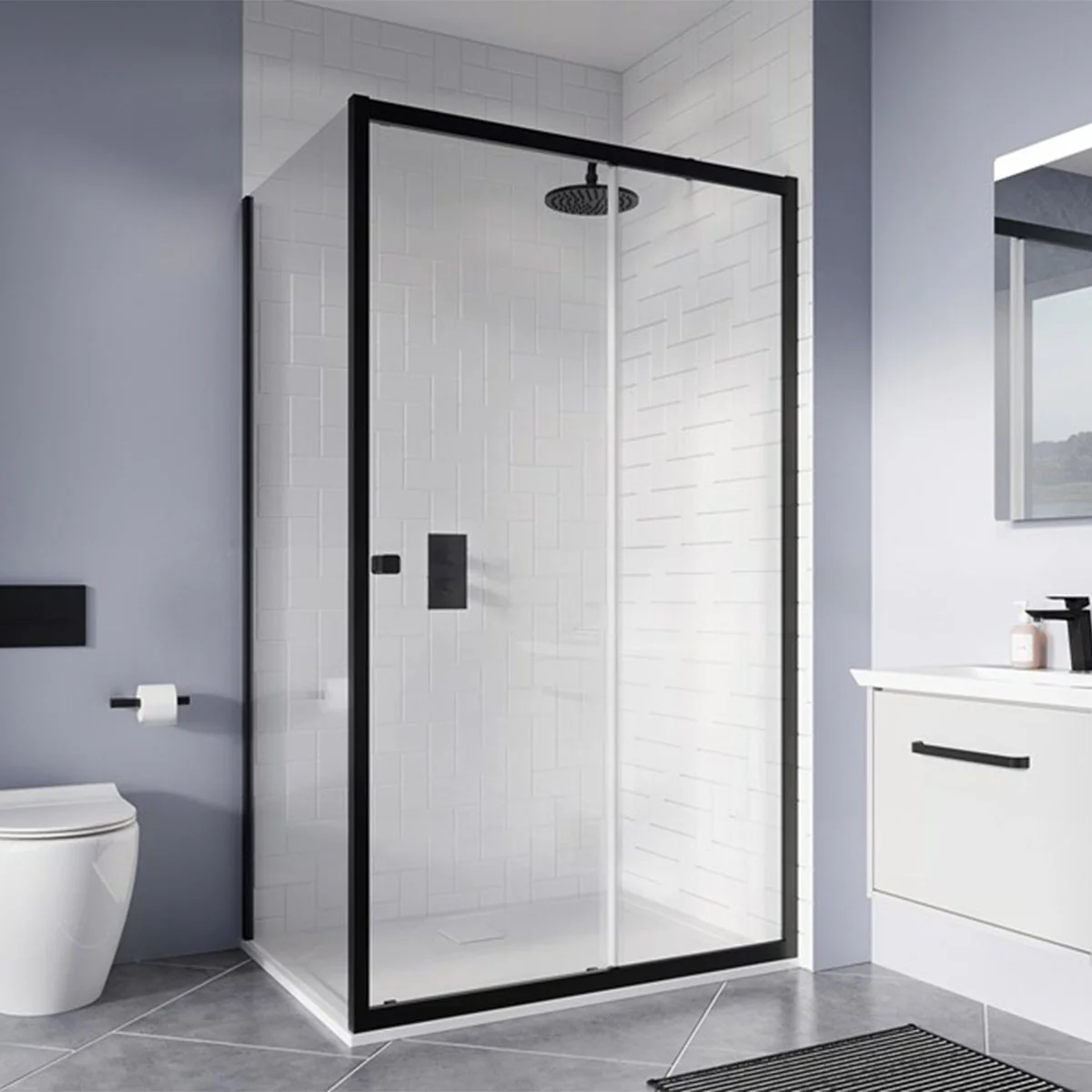 Crosswater Clear 6 Sliding Shower Door & Side Panel – Matt Black
