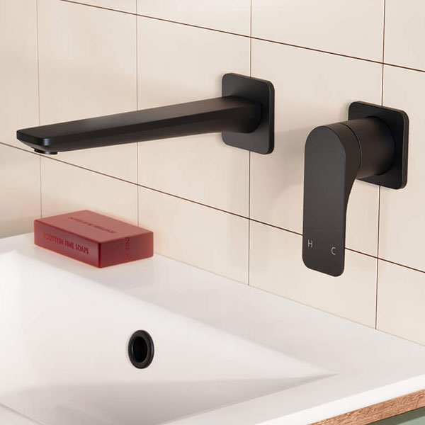 The Crosswater Fuse 2 hole wall mounted basin mixer tap offers a contemporary design with effortless functionality for a modern, on-trend bathroom interior.