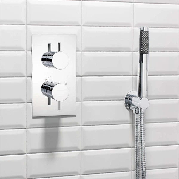The 2 outlet thermostatic shower valve delivers water to 2 outlets, where you can divert between the handset or overhead shower head, adjusting the temperature for either with ease.