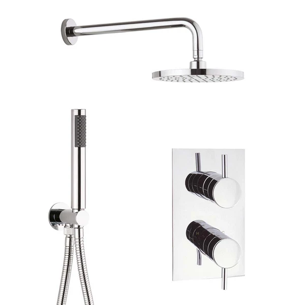 Crosswater Kai 2-Outlet Thermostatic Shower Valve with Pencil Handset and Overhead Shower Set – Chrome