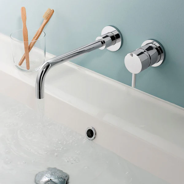The Kai Lever Wall Mounted 2 Hole Basin Mixer from Crosswater is a practical solution for any modern or traditional basin.