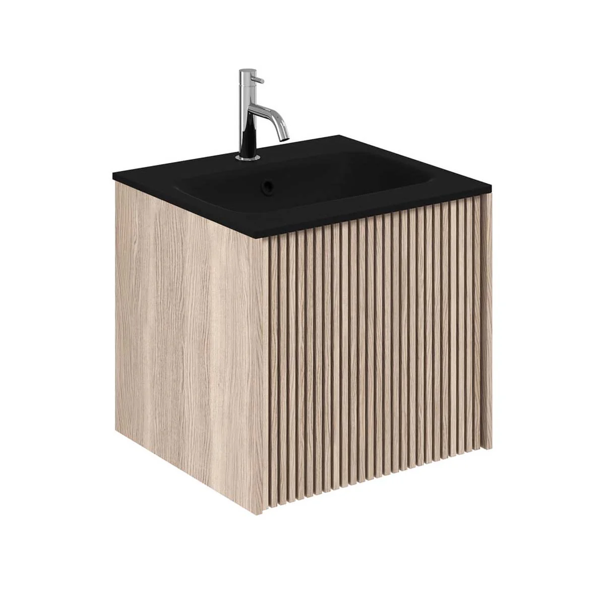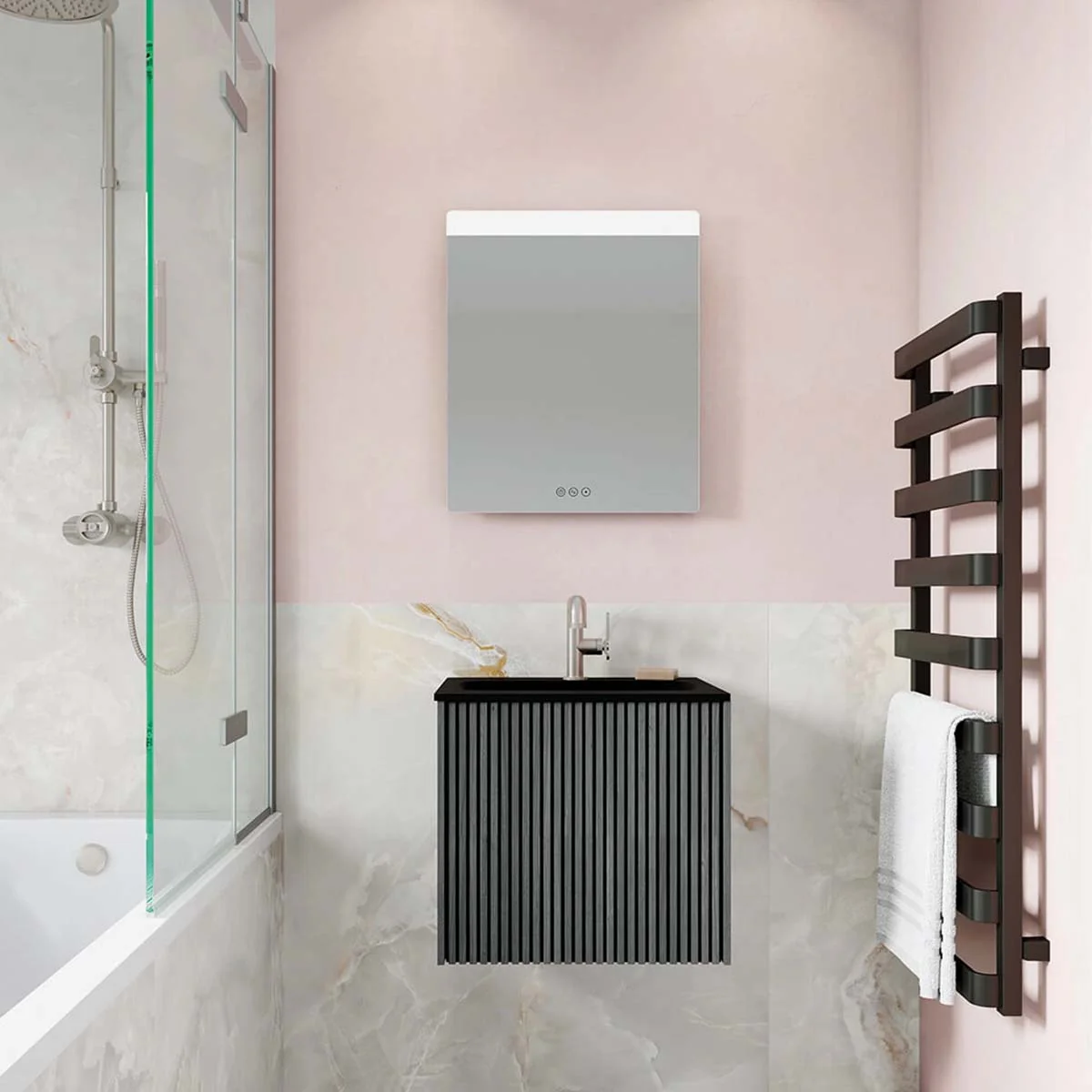 With a single soft-close, push to open drawer, you can easily store all your essentials within the spacious anthracite coloured interior. The front exterior showcases a 3D slat design, elevating this unit to a stylistic piece befitting any contemporary styled bathroom.