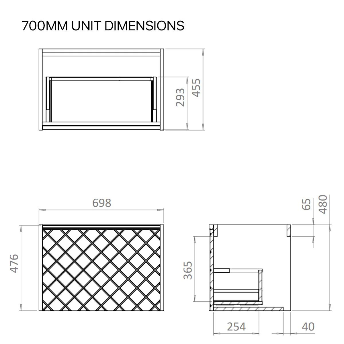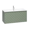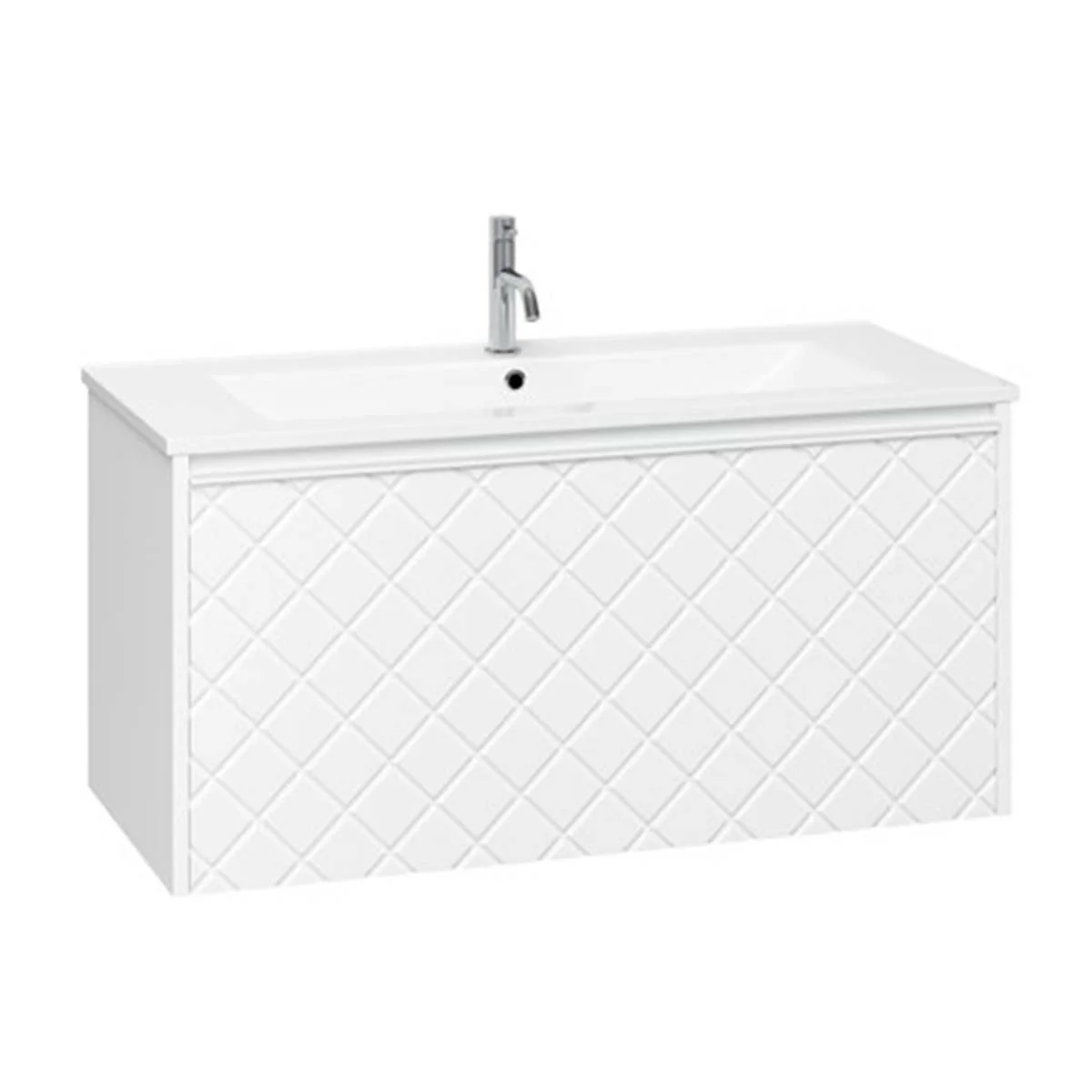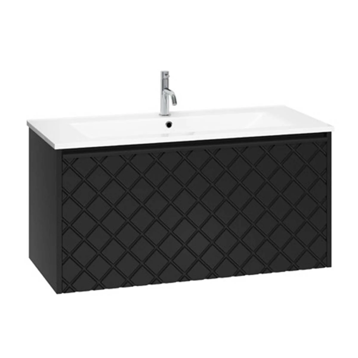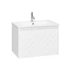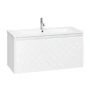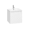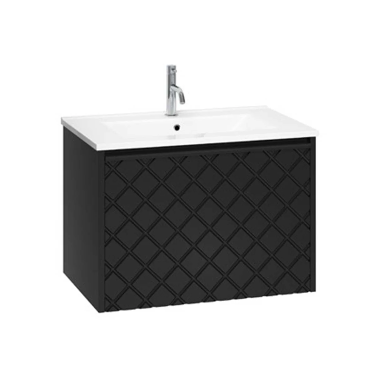 With its single soft-close full-extension drawer with integrated handle you can easily store all your essentials within. The front exterior of the unit displays a crosshatch pattern design with deep textured grooves, perfect any contemporary styled bathroom.