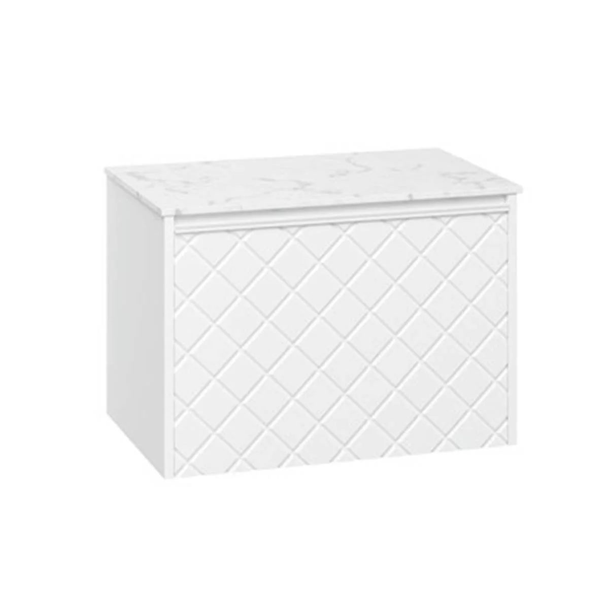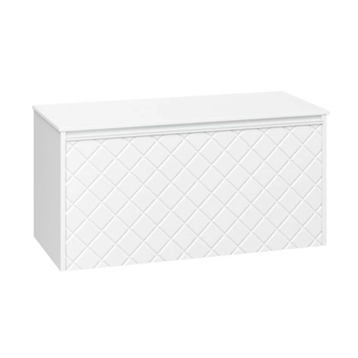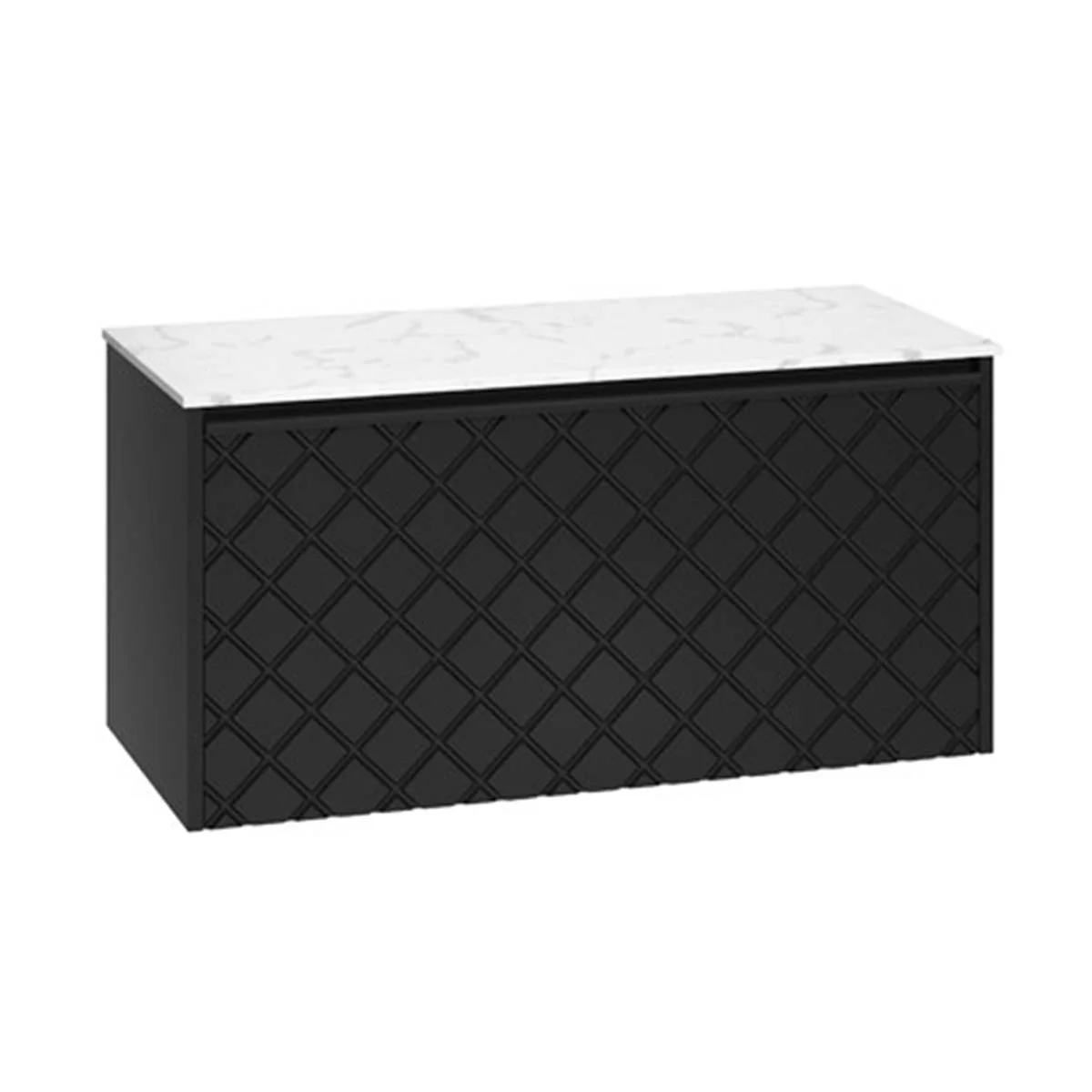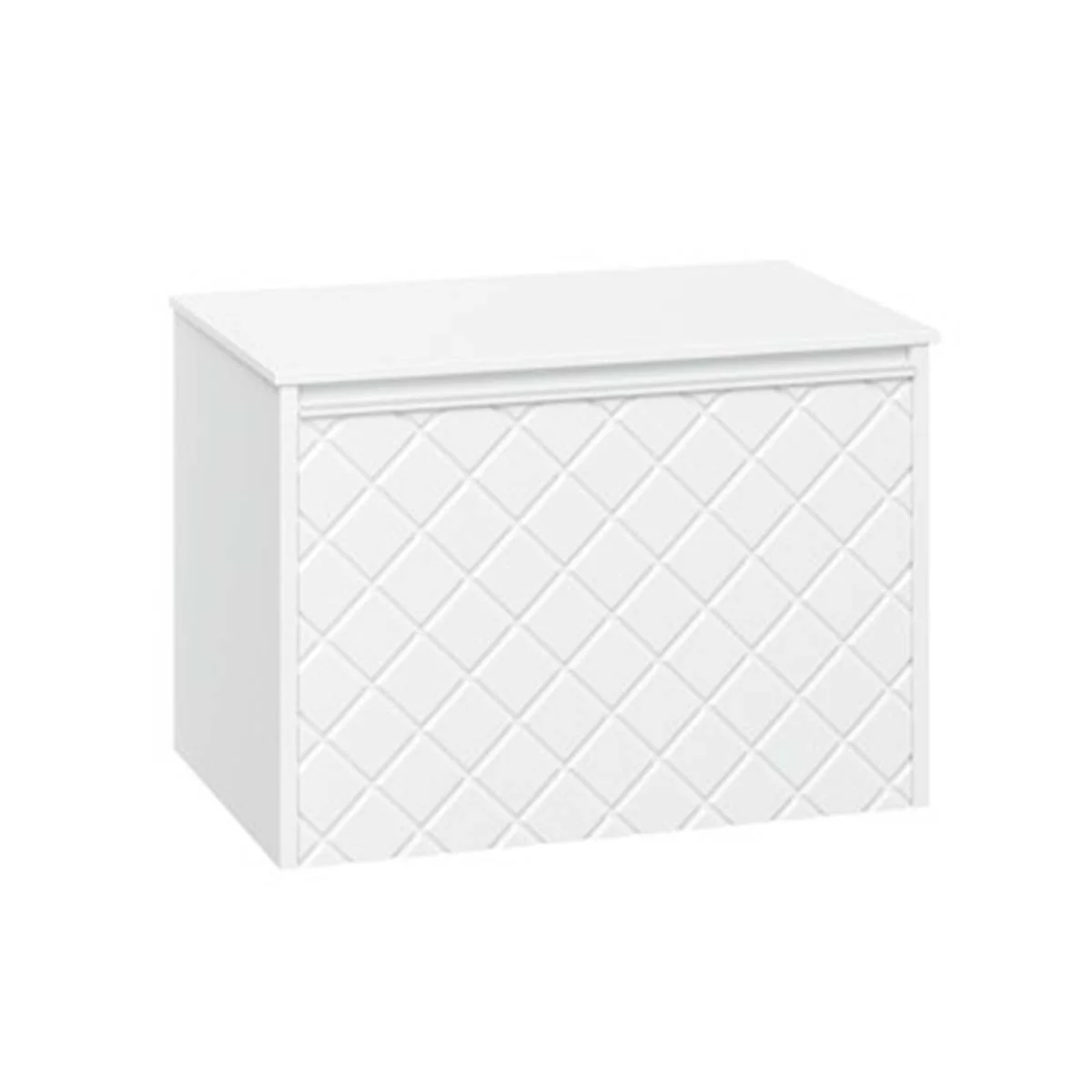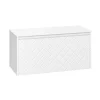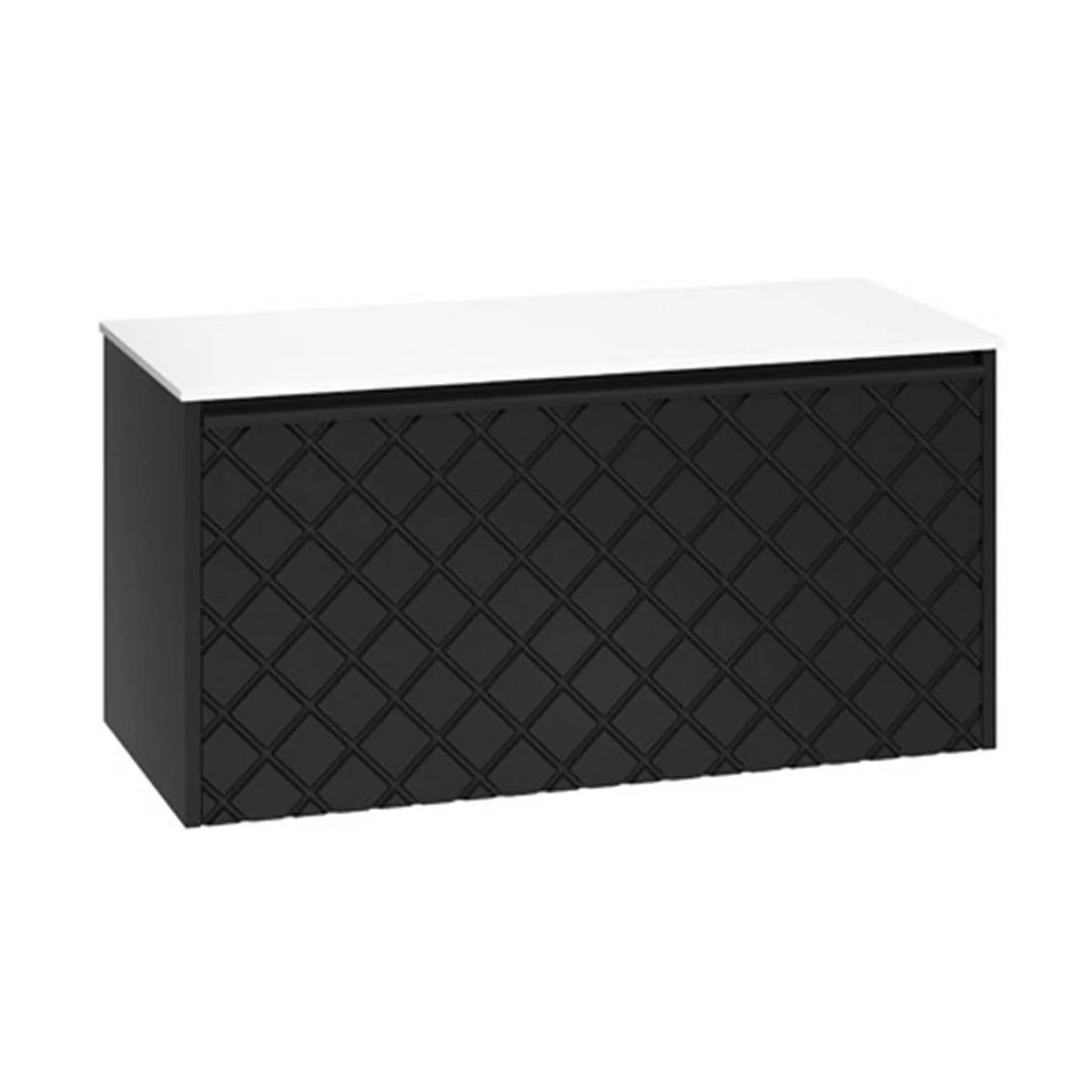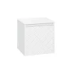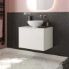 With its single soft-close, full-extension drawer with integrated handle, you can easily store all your essentials. The front exterior of the unit displays a crosshatch pattern design with deep textured grooves, perfect for any contemporary-styled bathroom.