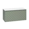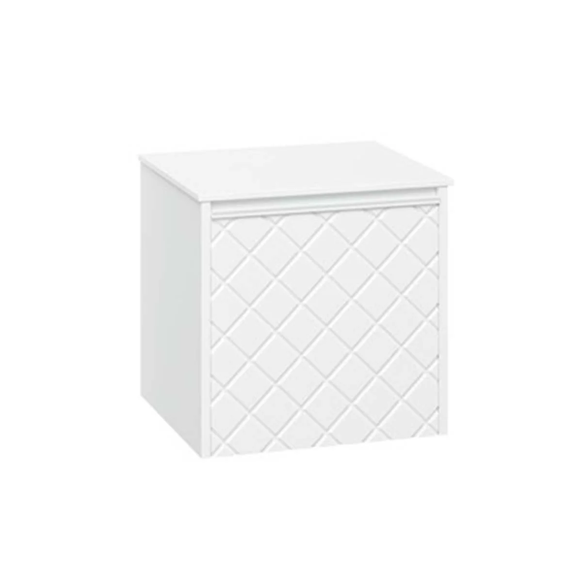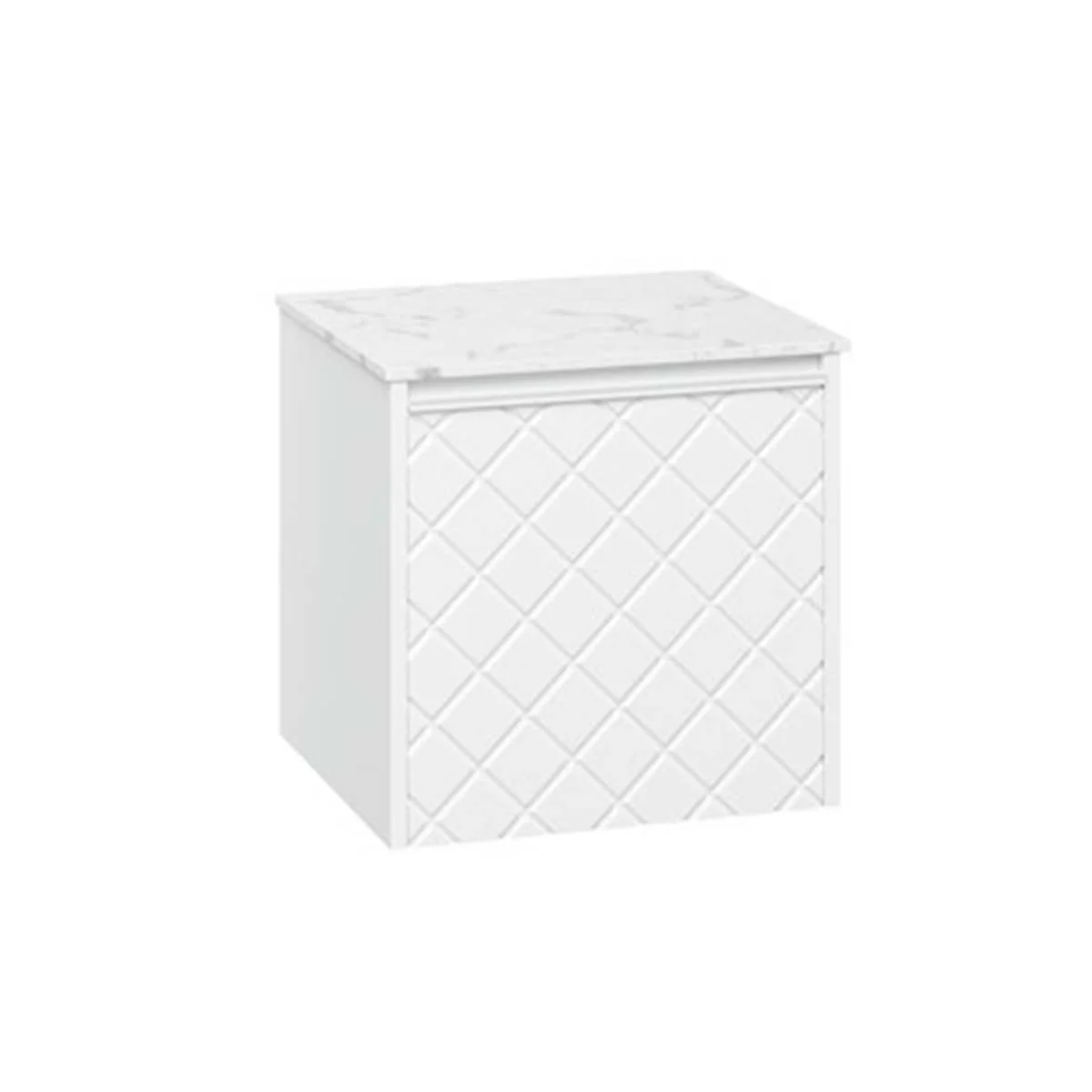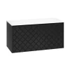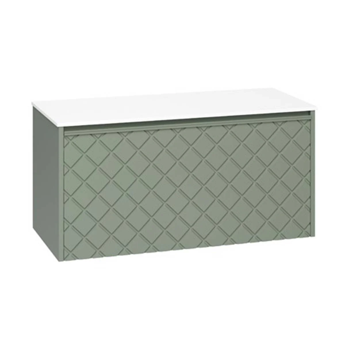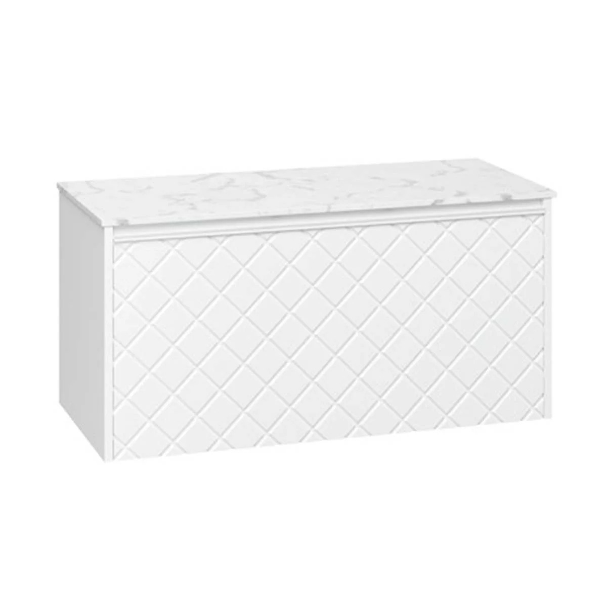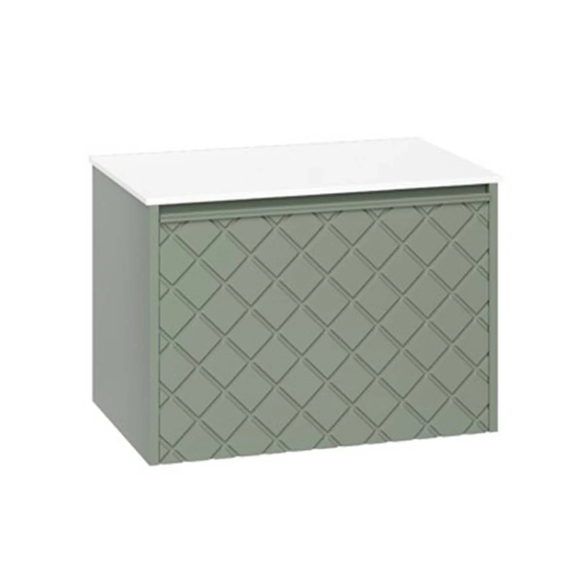 With its single soft-close, full-extension drawer with integrated handle, you can easily store all your essentials. The front exterior of the unit displays a crosshatch pattern design with deep textured grooves, perfect for any contemporary-styled bathroom.