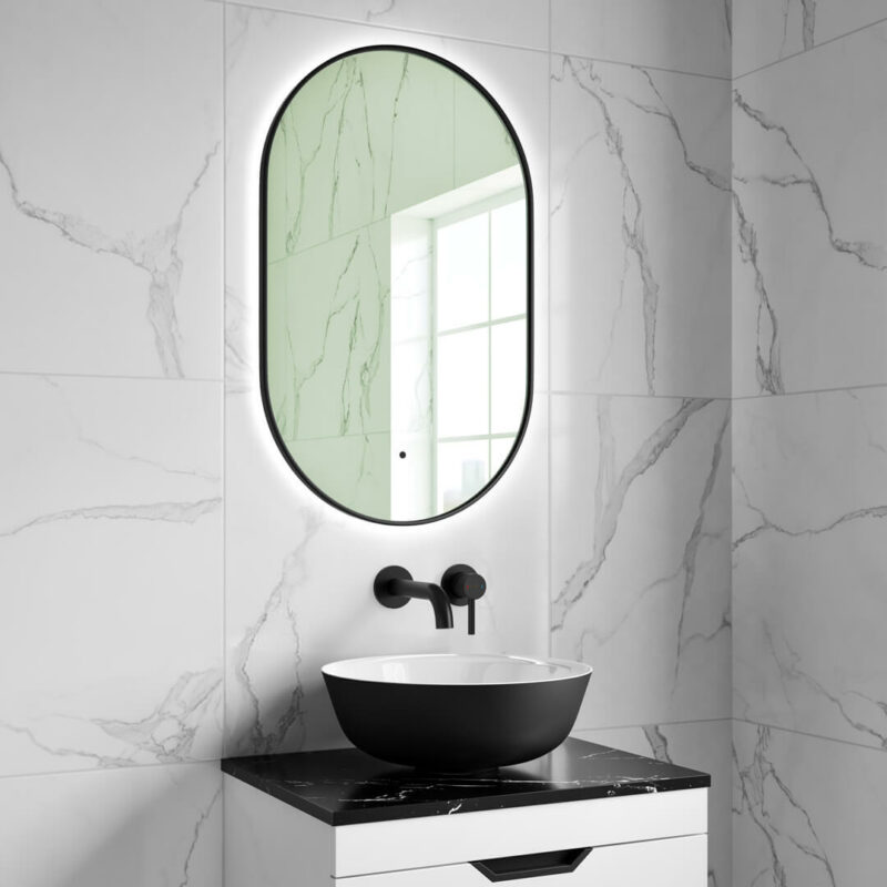 If you’re seeking a contemporary alternative to traditional round or rectangular LED bathroom mirrors, opt for our pill-shaped Finn. Available frameless for a chic finish or slim metallic frame to make a bold statement.