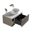 A perfect addition to any modern bathroom, the Flauto vanity unit is comprehensively stylish with it’s fluted panelling and earthy soft coffee finish.