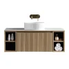 Florence Fluted 1000mm Wall Mounted Single Drawer Vanity Unit With Sintered Stone Worktop and 2 Open Side Shelves – Country Oak