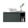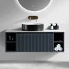 Florence Fluted 1000mm Wall Mounted Single Drawer Vanity Unit With Sintered Stone Worktop and 2 Open Side Shelves – Midnight Shadow