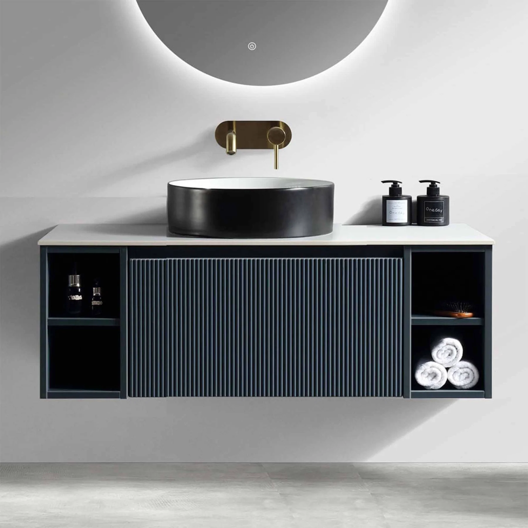 A perfect addition to any modern bathroom, the Florence vanity unit is comprehensively stylish with it’s fluted panelling and sleek midnight shadow finish.