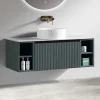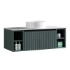 Florence Fluted 1000 Wall Mounted Vanity Unit With Worktop and Open Shelf – Smoked Sage