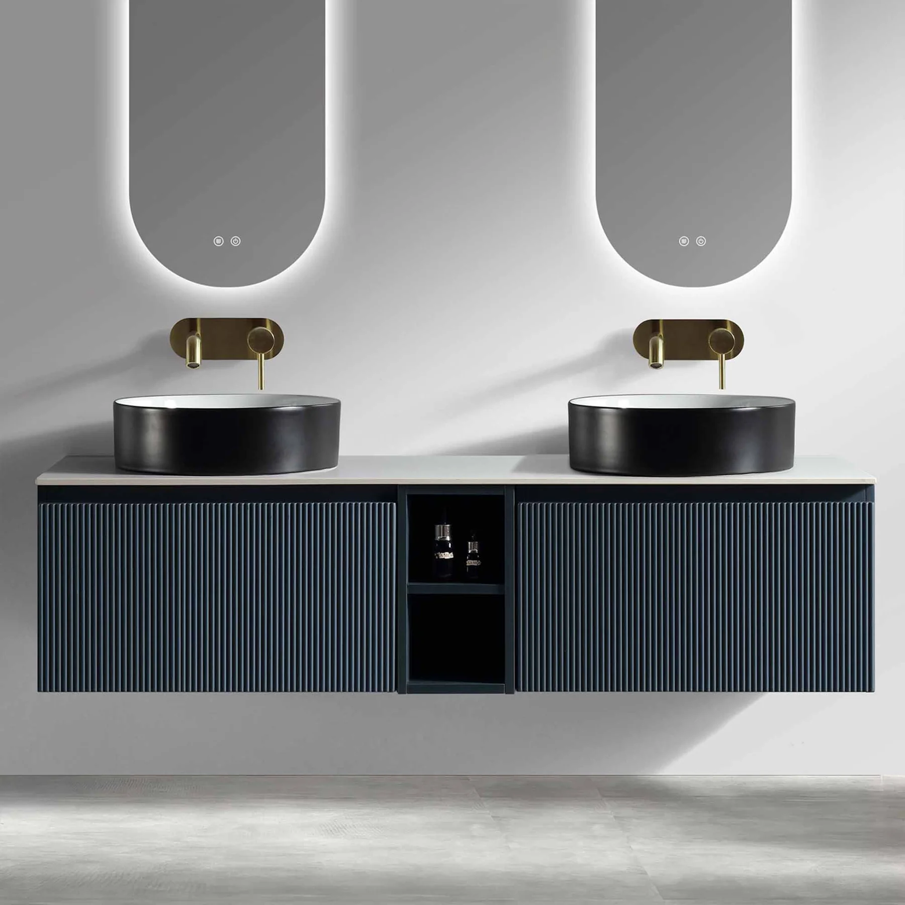 A perfect addition to any modern bathroom, the Florence double vanity unit is comprehensively stylish with it’s fluted panelling and sleek midnight shadow finish.