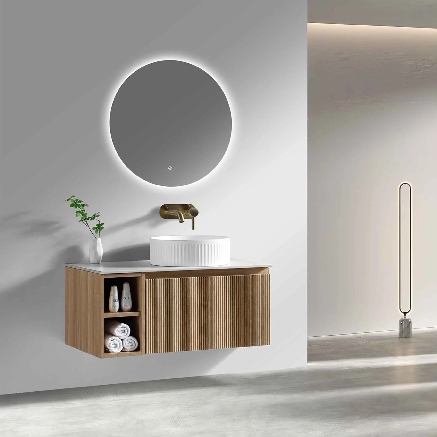 A perfect addition to any modern bathroom, the Florence vanity unit is comprehensively stylish with it’s fluted panelling and warm country oak finish.