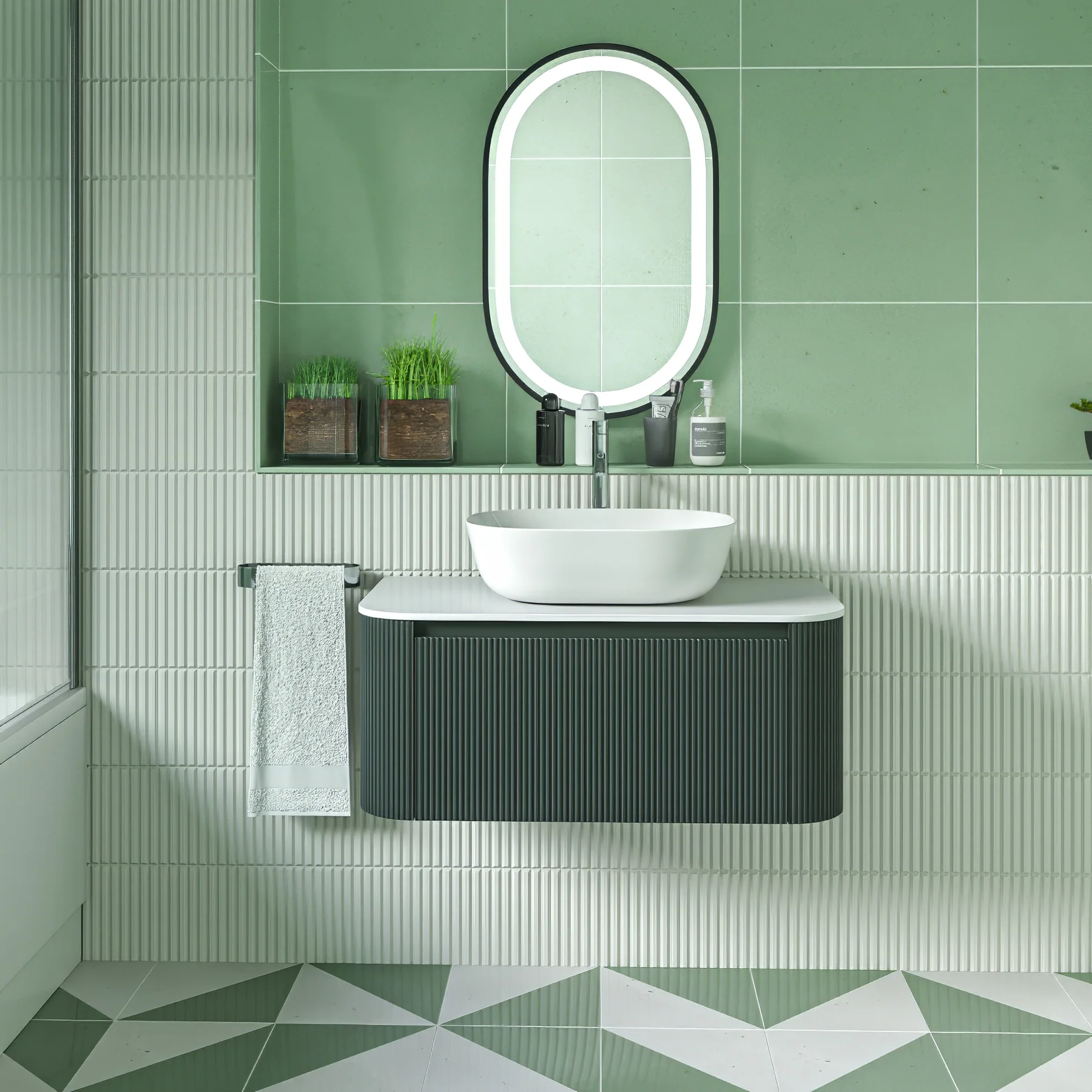 A perfect addition to any modern bathroom, the Florence Curved Vanity Unit is comprehensively stylish with it’s fluted panelling, rounded edges and Smoked Sage finish.