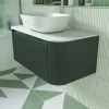 Florence Fluted 870 Curved Wall Mounted Vanity Unit With Worktop – Smoked Sage
