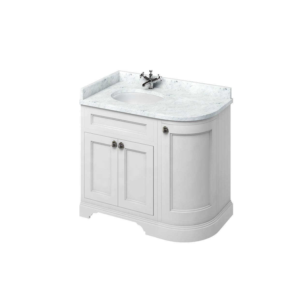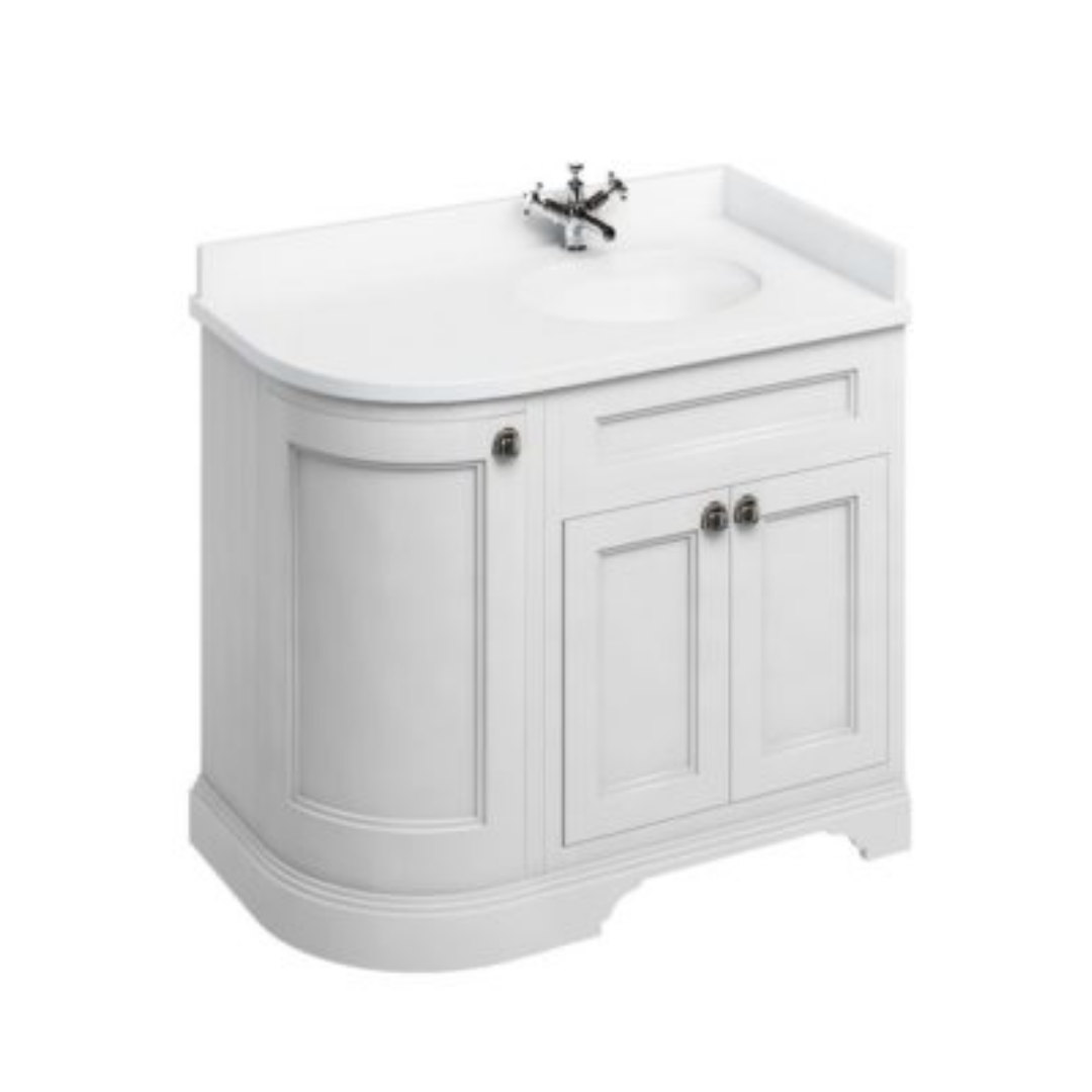 Freestanding 980 Matt White Curved Corner Unit & Vanity Bowl