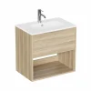This elegant unit offers generous storage with a single soft close drawer and open bottom shelf, while sitting atop is an inset basin featuring high quality vitreous china construction. With the single tap hole option you can easily mount your chosen mixer tap to the basin, or you can choose to have no tap hole, ideal if you’re choosing to go with a wall mounted basin mixer tap.