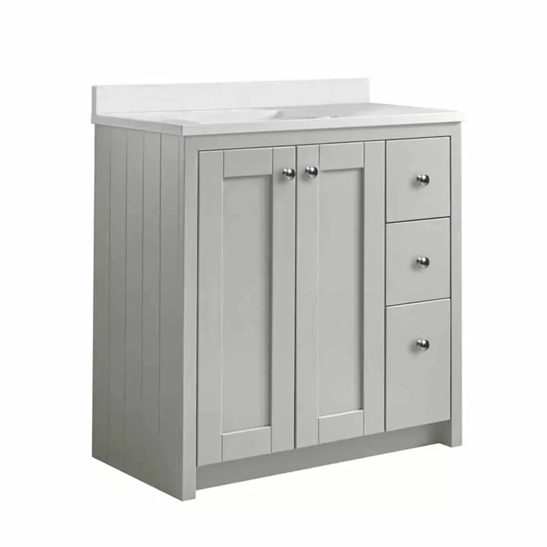 Lansdown 800 Floor Standing 2 Door 3 Drawer Bathroom Vanity Unit With Underslung Basin Worktop and Upstand – Pebble Grey