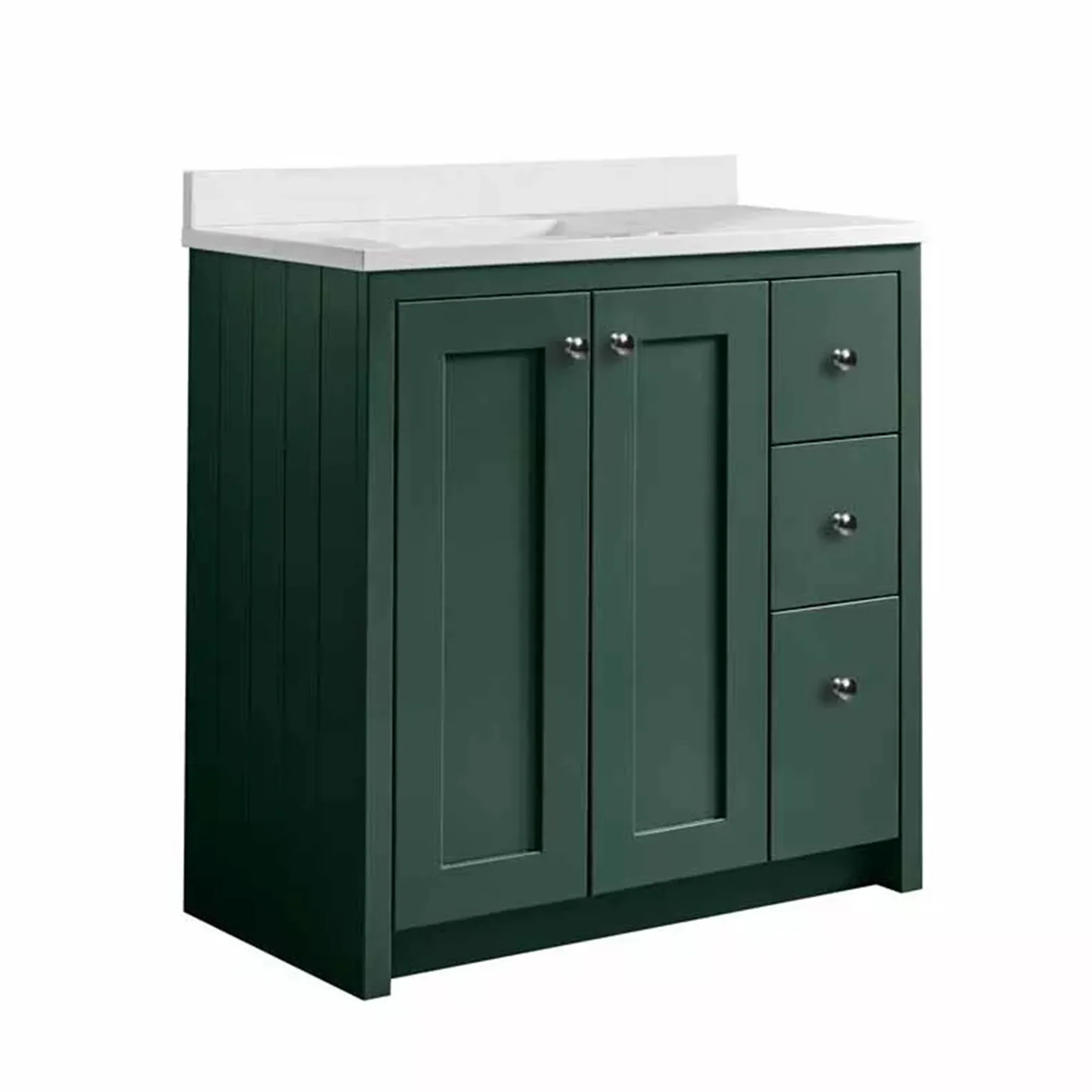 This unit from the Lansdown range of vanity units comes in a sherwood green finish but is also available in several other desirable finishes complete with a 10 year manufacturer’s guarantee.