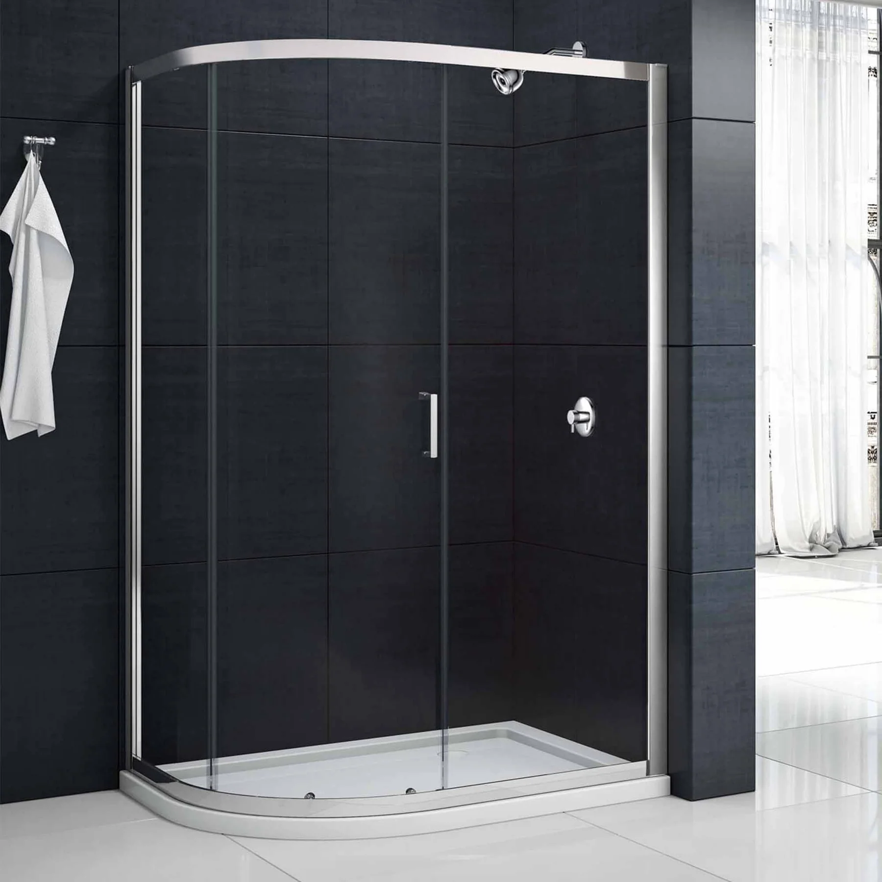 The Mbox Quadrant sliding shower door by Merlyn offers a sleek and contemporary design, making it the ideal choice for any bathroom. It is specifically designed to fit perfectly into any right angle corner, providing a spacious and stylish curved showering area.