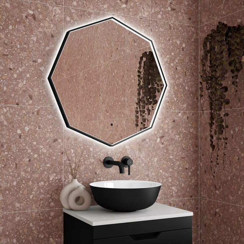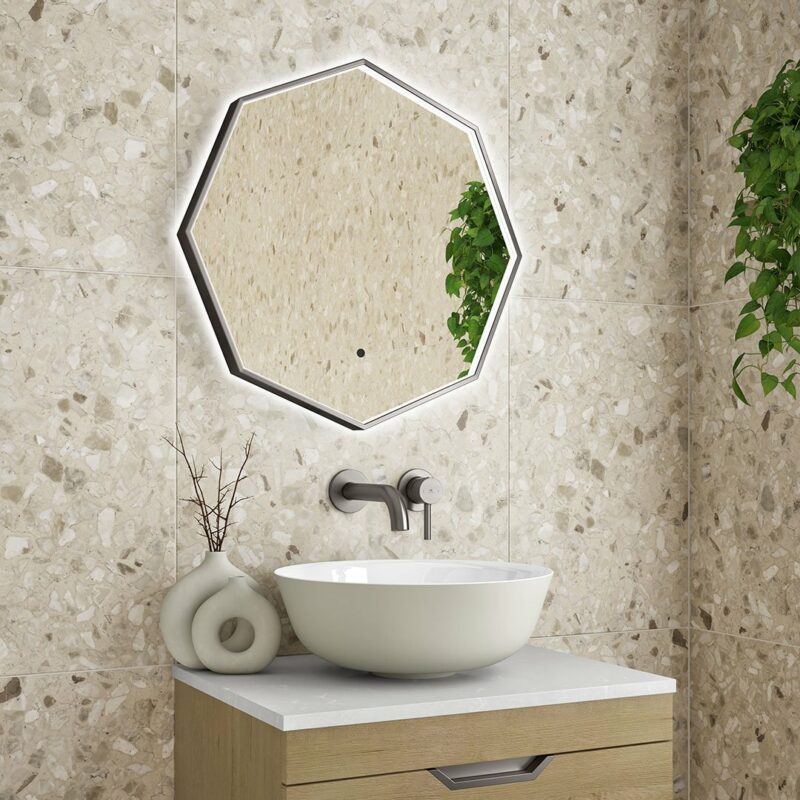 Stunning 8-Sided Framed LED Mirror available in two sizes, and three colours; Matt Black, Brushed Brass & Gun Metal